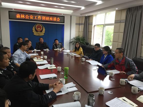 云南省森林公安局是我校的警学研基地之一,自2016年7月基地挂牌以来,校局双方在人才交流、警务培训、科技研发等方面开展了卓有成效的合作。课题组的此次调研得到了云南省森林公安局及相关州市县森林公安机关的高度重视、大力支持和配合。4月21日下午,省局党委委员、副局长王同兴携办公室、政治部、法制处、内保处、治安支队等课题相关负责人与课题组老师们展开座谈。他对课题组的到来表示欢迎,对云南森林公安机关在校局合作中推进的相关工作进行了介绍,并对实施相对集中林业行政处罚权以来,全省森林公安机关在行政执法工作中取得的成绩、总结的经验、遇到的问题作了简要说明,对本次调研的行程安排和后勤保障作出明确指示。