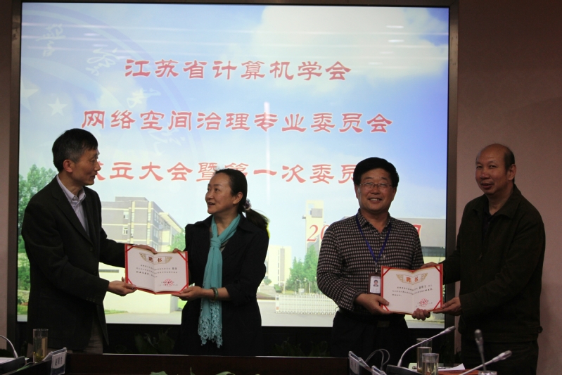2017年4月28日,江苏省计算机学会网络空间治理专业委员会在南京森林警察学院召开成立大会。校长张高文、江苏省计算机学会李宣东理事长、罗军舟副理事长出席了会议。会议由我校信息技术系赵明生主任主持。该专委会由南京市公安局、南京森林警察学院、江苏警官学院等单位发起,是江苏省计算机学会的第十八个专委会,第一批委员有47人。