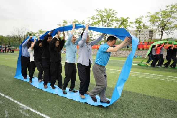 教职工趣味运动会同期举行,平日里或潜心学术,或埋头育人,或忙于管理工勤的教职工暂时放下手中的工作,参与到趣味毛毛虫、环环相扣等娱乐与交流行活动中,舒缓平日紧张的工作情绪,放松身心。