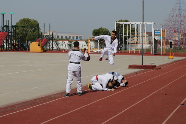 活动开始后,我校国旗护卫队整齐列队,在小朋友们的期盼目光中开始了升国旗仪式。他们口号响亮,步伐整齐,训练有素,脚步落地有声。虽然天气十分炎热,骄阳似火,汗水浸湿了国旗护卫队同学们的衣衫,但同学们的精神依然不减平常,出色地完成了任务。随后,武术协会和跆拳道会分别为小朋友们带来了精彩的搏击表演,赢得了在场小朋友和家长们的一致好评,现场掌声一阵接着一阵,不绝于耳,展示了南森学子的风采。