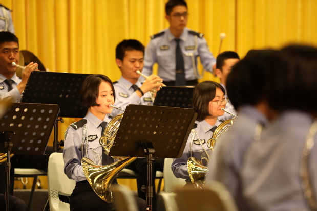在陆铭老师的指挥下,我校警乐团演奏了乐曲《俄勒冈》,乐曲描绘出俄勒冈的延绵不断和屹立不倒,生动形象地展现了作者豪迈奔放、荡气回肠之情。在时而低沉时而高亢的乐曲声中,台下的观众眼前仿佛展开了一幅宏伟的图画,也感受到了警校学子不一样的魅力。