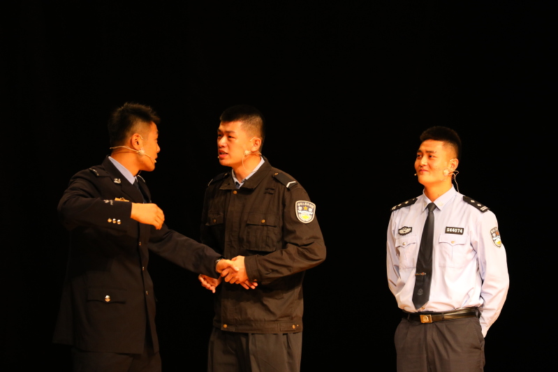 作品《旗》通过表现主人公小希勇敢面对困难,在国旗护卫队队长的带领下成为一名光荣的旗手的故事,表达了我校学生的使命感和责任感以及同学之间的“不抛弃,不放弃”。比赛过程中,同学们真情地演绎了警校生积极、向上、互帮互助的形象。