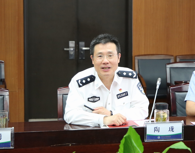 6月9日,中国刑事警察学院党委委员、改扩建办公室主任黄英方一行四人来我校考察信息化工作,交流信息化建设成果与建设经验。学校党委副书记陶珑与来宾亲切座谈,办公室、信息管理中心相关负责人参加了会议。会议由党委副书记陶珑主持。
