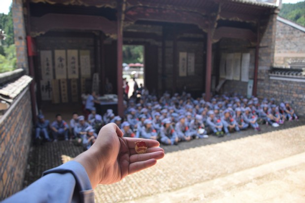 在“重走红军路”活动中,同学们穿上红军军装,体验急行军。四公里的山路跋涉对于警校生虽不是难事,但身着红军服,肩扛着枪支弹药,烈日曝晒下找情报、寻草药,这就对同学们团队合作能力提出了更高的要求。大家用四公里的徒步,深切体会到当年红军在战斗年代的艰辛困苦,感受到了他们不屈不挠的无畏精神。“过了黄洋界险处无须看”,在黄洋界终点处,同学们体会到了当年红军的胜利喜悦。