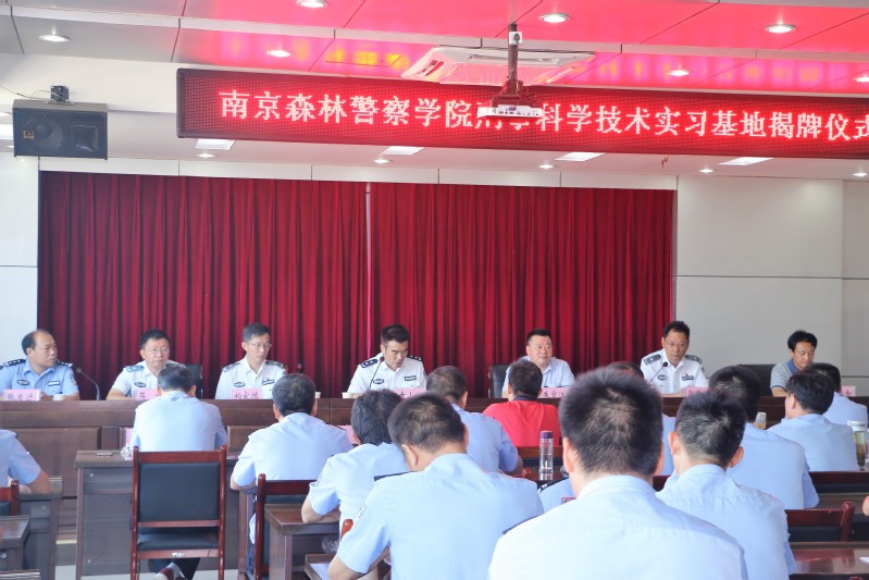 郭海涛主任与林承宏局长签订了《南京森林警察学院刑事科学技术实习基地共建协议书》,吉小林副校长与张友迁副局长、朱宽江副县长共同为实习基地揭牌。