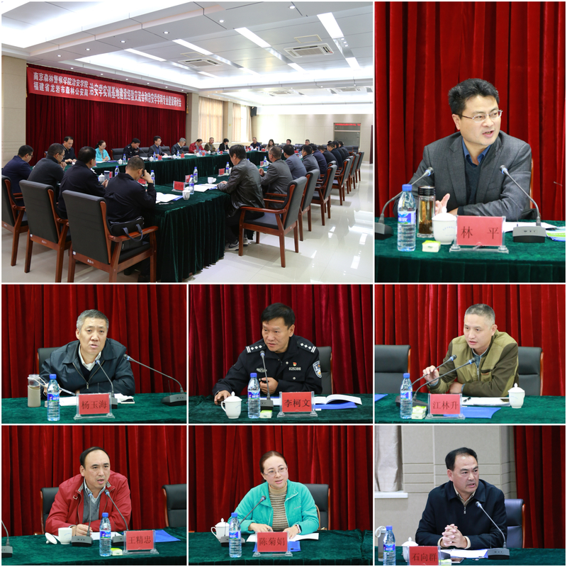 2017年11月22--23日,由南京森林警察学院治安学院主办,福建省龙岩市森林公安局承办的治安学实训基地建设经验交流会和治安学学科专业建设研讨会在福建省龙岩市顺利召开。到会的专家有北京警察学院副院长杨玉海教授、山东警察学院培训部主任王精忠教授、重庆警察学院治安系主任陈菊娟教授,龙岩市森林公安局李柯文局长,我校党委林平副书记、教务处处长江林升教授、治安学院院长刘成林教授、治安学院石向群教授,以及6个警学研基地的代表和我校治安学院张运生书记、陈积敏副院长、张崇波副教授出席了会议。6个基地分别是福建省龙岩市森林公安局基地、安徽省太湖县森林公安局基地、南京老山林场基地、江苏省南京栖霞山风景名胜区管理处基地、江苏省南京中山陵园管理局基地、浙江省义乌市公安局基地。