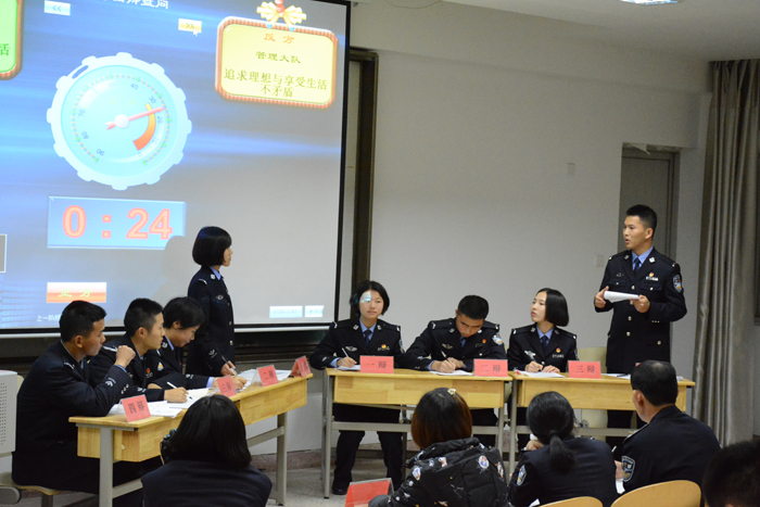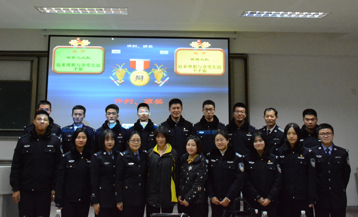 首先进行的是季军争夺赛。双方就“法治能否消除腐败”展开了激烈的辩论。辩手们你来我往,互不相让,围绕着定义与论点进行了多次交锋,最终信息大队荣获季军。在冠军争夺赛中,双方就“追求理想和享受生活是否矛盾”进行辩论,辩手们旁征博引,唇枪舌战,赛出了精彩,赛出了水平,现场高潮迭起,掌声不断。最后,评委老师们根据双方论点的切入以及论据的使用是否合理、有力等进行了综合评定,管理大队以清晰的逻辑和简单易懂的立论荣获冠军,公管1703区队的郭鑫月同学被评为“最佳辩手”。