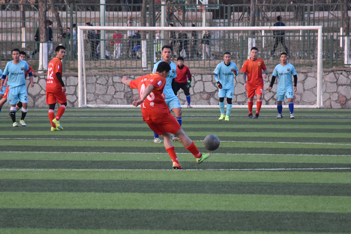 上半场伊始,无论是信息大队还是治安二大队的队员们都展现出了超强的传控能力和高度的默契。双方都保持高度警惕,紧盯对手,攻防相继替换,双方球员丝毫不敢懈怠,仅仅开场几分钟,球一次次地擦过球门,点燃了观众的热情。随着时间的推移,治安二大队在球队队长的带领下,发起了猛烈进攻,信息大队也毫不松懈,防守坚如磐石。在稳定的防守下,信息大队终于找到对手的漏洞,顺势反攻,情报1602的张哲皓在禁区前攻下一球。最终,上半场以1:0结束,信息大队暂时领先。