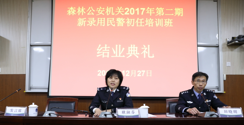 12月27日下午,森林公安机关2017年第二期新录用民警初任训练班结业典礼在花园路校区警官培训中心举行。南京森林警察学院耿淑芬副校长出席结业典礼并讲话,警官培训中心副主任田晓明主持了本次结业典礼并作结业总结。