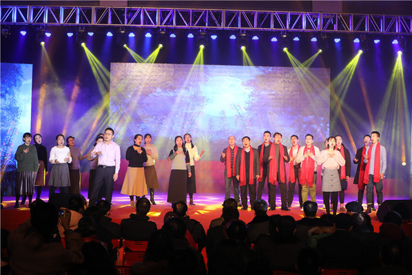 王邱文书记代表学校向全体师生员工、离退休人员以及关心学校发展的社会各界人士致以新春的祝福。各党总支、工会和团委选送的师生联欢晚节目,形式多样,健康风趣。