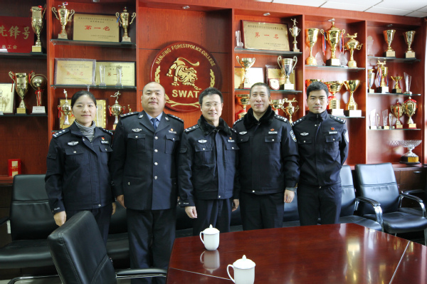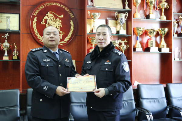 1月11日,江苏省公安厅国合局副局长杨兴亮来校交流座谈,为特警学院党总支书记周波送来安哥拉内政部颁发的荣誉证书和江苏省公安厅的表扬信。党委副书记、纪委书记陶珑出席座谈会。