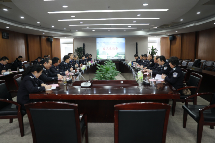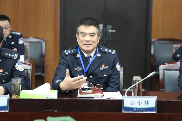 1月18日,河北公安警察职业学院党委委员、学生工作处处长付秀臣一行到我校交流座谈。吉小林副校长出席座谈,组织处、人事处、纪委、教务处、科技处、学生工作处、团委、财务处、后勤处、保卫处、治安学院以及侦查学院等相关职能部门负责人参加会议。