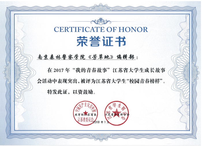 近日,在全省大学生成长故事会活动表彰中传来喜讯,我校《芳草地》编辑部被评为2017年江苏省大学生“校园青春榜样”。