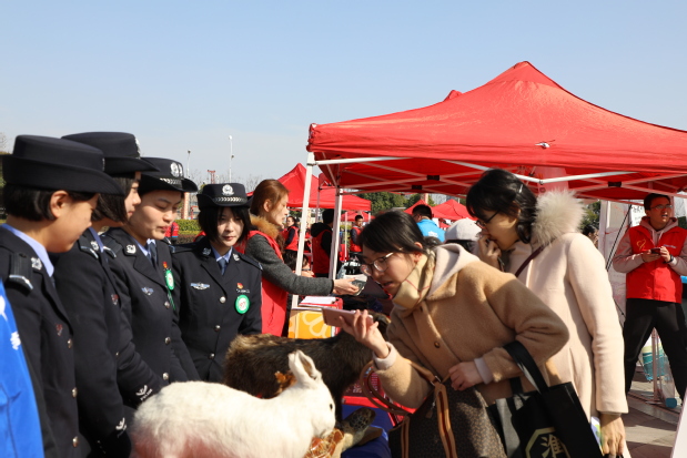 启动仪式上,我校同学以昂扬的精神面貌赢得了在场众多志愿者团队的一致好评,并被作为队列标杆让其他活动团队方阵予以对标。在志愿服务展示区,我校志愿者耐心细致地向广大群众和志愿者朋友讲解野生动植物保护的有关知识,并与其他高校的志愿者们互相交流,学习志愿服务的先进经验。