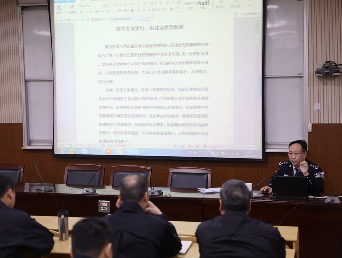 3月20日下午,南京森林警察学院张高文校长在警官培训中心阶梯教室,为第38期职务晋升训练班学员做了《生态综合执法改革》的专题讲座。