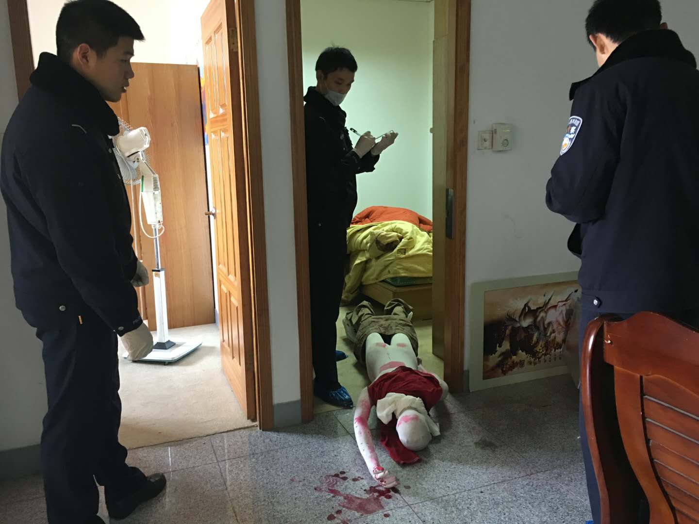 学生认真勘查现场工作