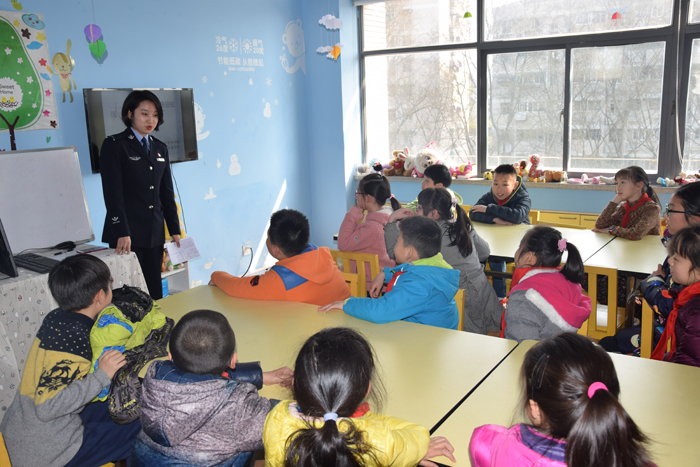 活动一开始,志愿者们穿着藏蓝色的警服走进课堂,受到了孩子们热烈地欢迎。课堂上志愿者们以视频、PPT、互动抢答和互动游戏等多种方式给孩子们讲解了当今中国水资源的现状,并分享了很多生活中的节水小技巧,有效地培养了孩子们节约用水的意识,现场气氛活跃,孩子们积极发言。活动最后,志愿者和孩子们一起做了用纸杯穿水的小游戏,并给孩子们分发了事先用塑料瓶做好的滴灌水瓶,让孩子们回家自己装饰,用这种方式让孩子们将节水的意识带回家,带给家长。