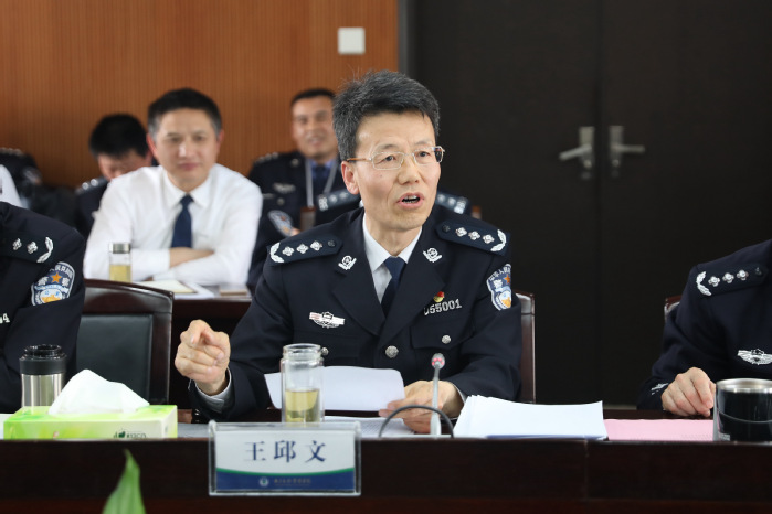 王邱文书记指出,全校上下要把思想和行动统一到中央和局党组决策部署上来,以人才培养为中心,聚焦立德树人,坚持“办特色、推典型、出精品”的思路和举措,围绕改革抓谋划、瞄准目标抓落实,以强有力的党建和思想政治工作引领学校创新发展,为建设特色鲜明的、在国内外具有影响力的高水平警察院校努力奋斗。