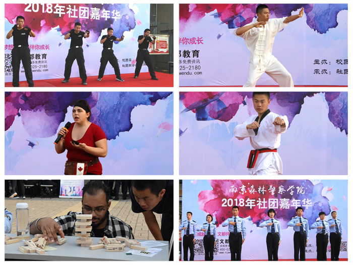 静思湖畔,春光明媚,暖风习习,各社团都在现场的舞台上展示各自所强——足球协会一改其固有风格,带来歌曲《玫瑰》;搏击协会展示的一整套搏击技巧尽显其铮铮铁汉的强大气场;演讲与辩论协会带来古韵风雅的琵琶独奏,让在场的每一个人都陶醉其中;手语社的手语操《中华好儿孙》表达了莘莘警校学子的拳拳爱国之心;加拿大汉博公立学院的学生代表现场一展歌喉,清唱了一曲《rolling in the deep》,声音犹如天籁,将全场氛围推向高潮……每个社团的展台前都人潮涌动,同学们积极参与到各个社团的小游戏中。加拿大汉博公立学院的同学们也对我们的社团嘉年华表现出了极为浓厚的兴趣,与各个社团积极互动,同时也对我校丰富多彩的校园文化竖起了大拇指!