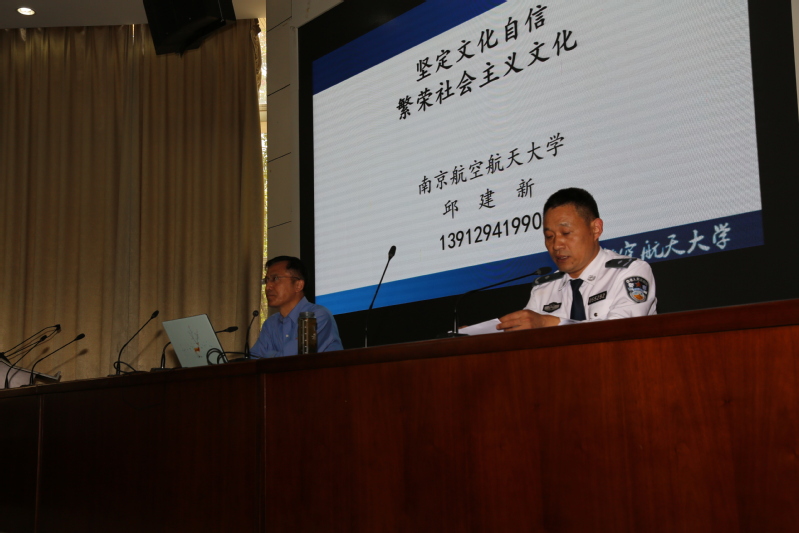 为了加强同学们对文化的认识,提高自身的文化自信,加强社会主义文化建设,2018年4月11号下午3点,特警学院特邀南京航空航天大学邱建新教授为全体特警师生开展了主题为“坚定文化自信,繁荣社会主义文化”的学术报告。报告会由贾昌志院长主持,柳迪文副书记、赵良辰老师与特警全体学生聆听了此次讲座。