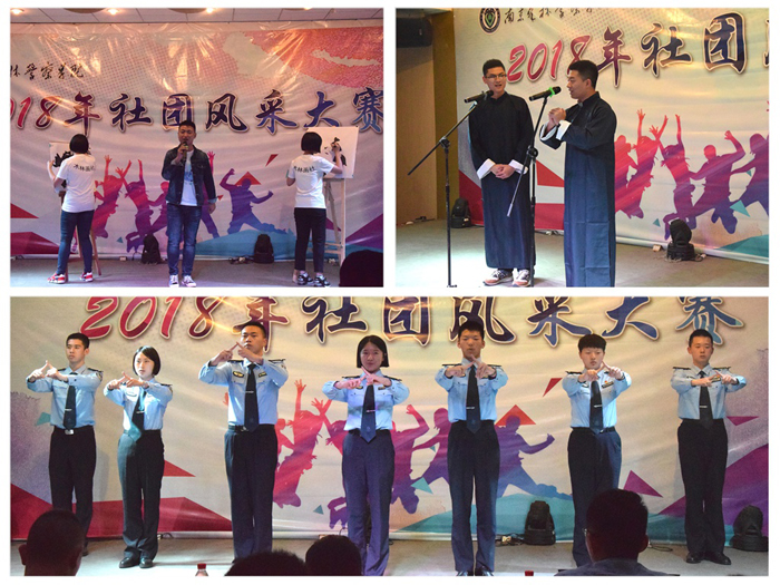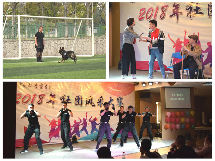 比赛精彩纷呈,现场洋溢着青春活力,参赛节目极具创意,充分展现了各学生社团的风采。警务实战俱乐部将警犬的训练与实战相结合,向同学们展示了警犬在实战中的重要作用;锅庄协会带来了具有藏族风情的舞蹈;书法协会和传统武术协会联合表演了《泼墨舞风》,让同学们领略了中国传统文化的魅力;搏击表演、跆拳道表演、花枪操等惊险刺激,点燃了现场的气氛;令人捧腹的相声、发人深思的小品、玄而又玄的魔术表演、深情的演唱……各具特色的节目让现场观众目不暇接。