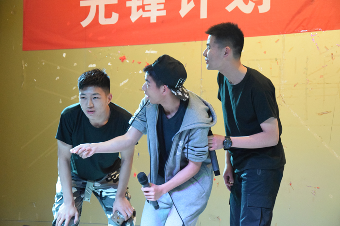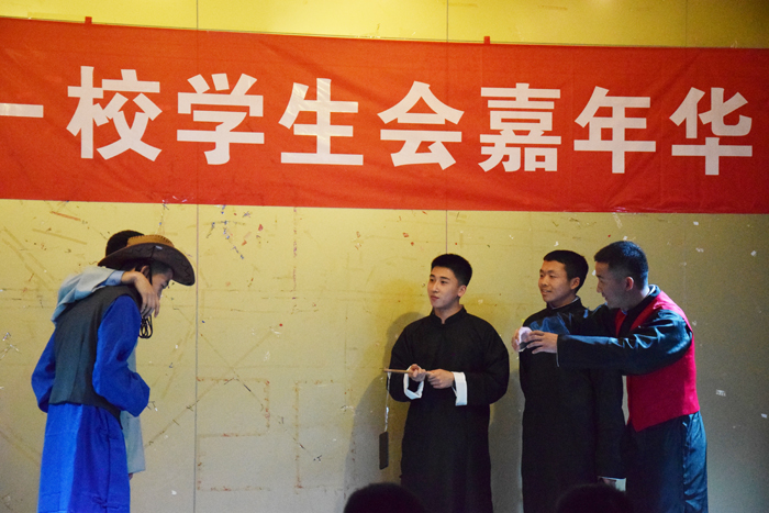 表演结束后,活动第二个项目——“传声筒”游戏火热进行。在第一轮表演中取得前五名的五个部门——文艺部、学习部、办公室、外联部、编辑部各派四名部员参加游戏PK。游戏内容为第一个同学观看影视片段,并把记下来的台词传述给后一位,当传到最后一位同学,看他还能背出多少台词。整个活动很考验选手在紧张状态下的短时记忆和心态,台下的观众随着着台上的传递也是越发紧张。生动有趣的活动,各部门成员的良好互动让本次嘉年华精彩纷呈。