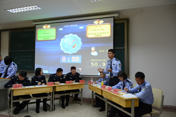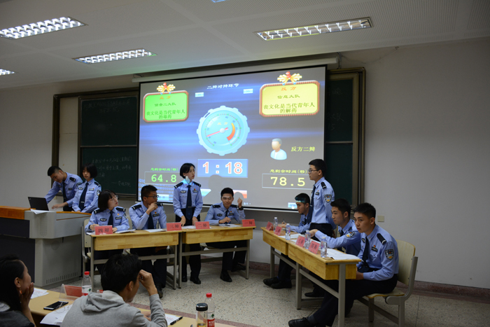 4月21日晚,“警苑之声”辩论赛半决赛在教学楼312教室举行。信息大队、治安二大队、侦查二大队和管理大队分别以小组第一名出线进入四强。南京中医药大学校辩论队副队长储秋羽、南京财经大学演讲与辩论协会主席申琦、南京邮电大学校辩论队领队吴昊应邀担任比赛的评委。