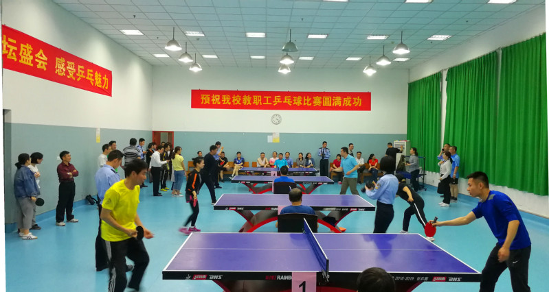 为进一步丰富我校文体生活,增进教职工间的交流和友谊,校工会于4月18日—4月26日举办了2018年教职工乒乓球团体比赛。本次比赛有11支分工会代表队,100余名教职工参加比赛,校党政领导与教职工同场竞技,现场气氛热烈、精彩纷呈,参赛队员积极投入、勇于拼搏,在场观众掌声阵阵、喝彩不断。