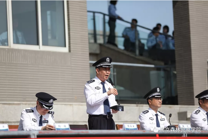 校长张高文宣布南京森林警察学院2018年体育运动会开幕。