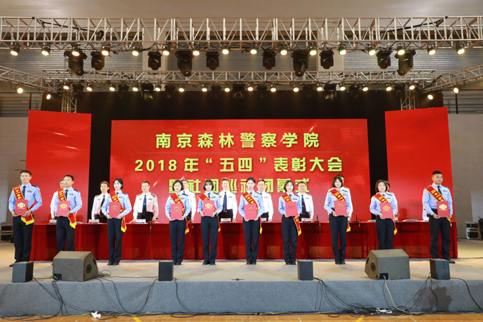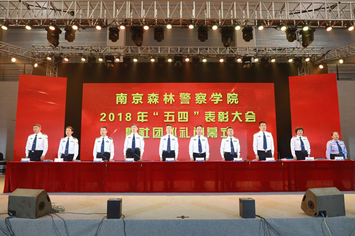 在“五四”表彰大会上,主席台领导为2018年“警校十佳”学生、2017-2018年度“优秀共青团员”“优秀共青团干部”“先进团支部”获奖代表、2018年星级社团获奖代表分别颁奖。
