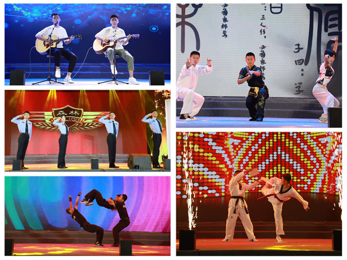 演出以警乐团表演的行进管乐《号角》开篇,整齐的步伐、激昂的旋律让观众领略了行进管乐独有的魅力。大学生艺术团女生们带来的舞蹈《茉莉花开》用曼妙的舞姿配合江苏民歌《茉莉花》的曲调让现场观众看得如痴如醉,充分展现了警校女生柔美多姿的一面。合唱团以阿卡贝拉的形式演唱了一曲《刚好遇见你》,传递了他们对合唱团以及学校的爱。手语社用手语操配合双截棍表演演绎了歌曲《中华好儿孙》,表达了莘莘警校学子的拳拳爱国之心。接着,大学生艺术团的同学们带来了抖音串烧舞蹈《流行元素》,舞姿激情,音乐动感,现场气氛一下子被点燃。锅庄协会带来了藏族舞蹈《芒康弦子》,让观众们领略了一番藏族同学的热情似火和多才多艺。由吉他协会、跆拳道协会、传统武术协会、搏击协会带来的社团节目串烧让现场沸腾起来,无论是吉他弹唱的悠扬,还是跆拳道协会、武术协会、搏击协会的套路表演,都展示了社团同学扎实的功底。随后,以江苏省十佳社团——木林画社优秀校友事迹为基础创作的小品《画中梦》,通过梦境的形式,展示了木林画社同学将社团中培养的兴趣和技能应用于公安工作的独特情节,反映了社团对于学生成长成才的重要作用,同学们也随着剧情的变化感受着社团文化的独特魅力。由侦查一大队带来的军旅舞蹈《迷彩英雄》以刚劲有力的动作展示了警校生英雄本色的一面。广播站带来的朗诵剧《警色年华,巡梦拾光》,以“情怀、担当、创新、传承”四个关键词讲述了社团的那些事,回顾了多彩社团的悠久历史和成长轨迹,同学们用倾情的演绎让全场观众都沉醉在社团人的故事里。演出在一曲意味深长的《光阴的故事》里结束,听着那美妙的音乐,所有观众都感到意犹未尽。