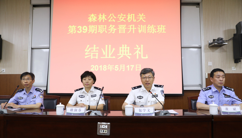 5月17日上午,全国森林公安机关第39期职务晋升培训班结业典礼在花园路校区警官培训中心举行。南京森林警察学院副校长耿淑芬、警官培训中心常务副主任包学文、副主任田晓明出席结业典礼,结业典礼由警官培训中心副主任黄斌主持。