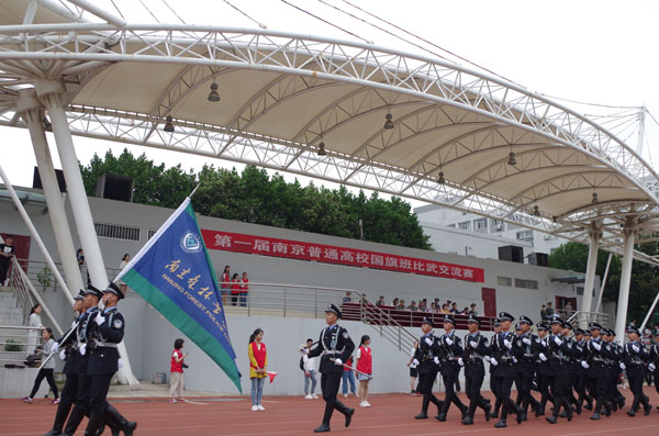 5月19日,我校国旗护卫队应南京农业大学邀请,参加了在该校举办的首届南京普通高校国旗班比武交流赛。