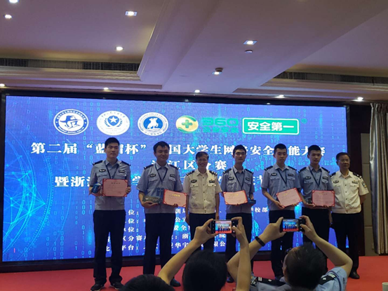 6月3日,第二届“蓝帽杯”全国大学生网络安全技能大赛浙江区分赛在浙江警察学院举行。由我校信息技术学院学生组成的四支代表队代表我校参加本次竞赛,共获得一等奖1项、二等奖1项和三等奖2项,并有两支队伍晋级决赛。