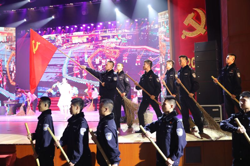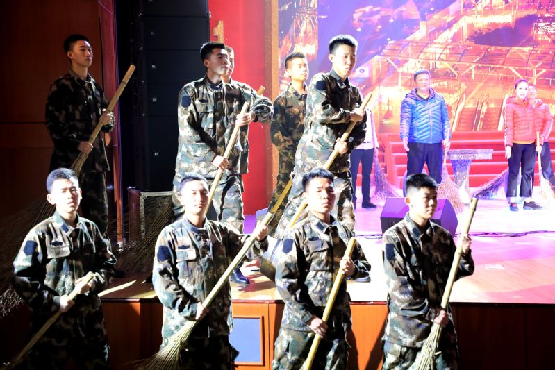 整场庆祝大会分为旗帜栖霞、大美栖霞、创新栖霞三个篇章,多形式全景展现栖霞近年来改革创新、攻坚担当的成就。其中,我校学生参演了第二篇章的音乐情景剧《大美栖霞因为有你》《雪中的掌心》。同学们拿着笤帚和铁锹在剧场中穿梭的画面生动地再现了2017年校地方双方携手抗击雪灾等难忘情景,在场观众心生感动、反响热烈、掌声不断。