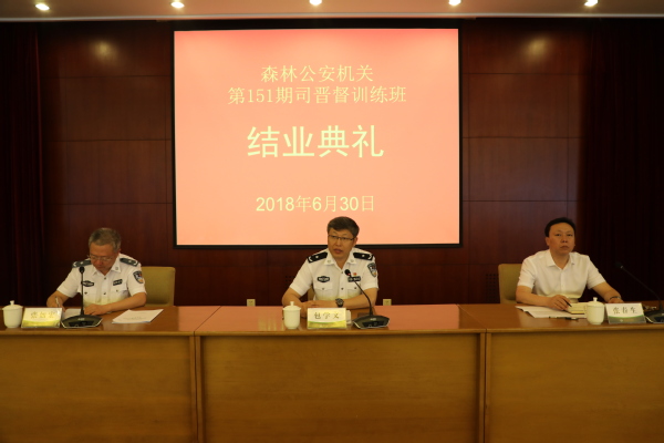 2018年6月30日上午,全国森林公安机关第151期司晋督培训班结业典礼在南京森林警察学院北戴河校区举行。国家林业局森林公安局警官培训中心常务副主任包学文、北戴河校区主任张春生出席结业典礼,结业典礼由张如宏同志主持。