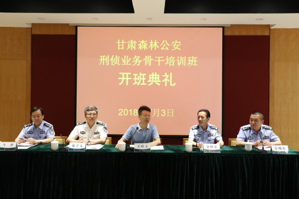 2018年7月3日,甘肃省森林公安局全省森林公安刑侦业务骨干培训班开班典礼在北戴河校区举行。南京森林警察学院党委书记王邱文、甘肃省森林公安局党委委员、副局长蒲晓荣、国家林业局警官培训中心常务副主任包学文、甘肃省森林公安局刑侦处副处长牛犁同志出席开班仪式。开班典礼由甘肃省刑侦处处长安明强同志主持。