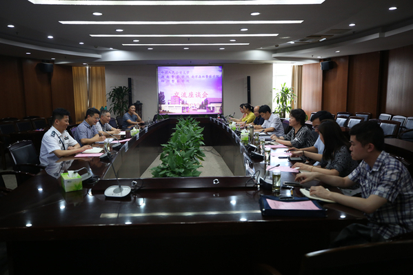 中国人民公安大学副巡视员王大为教授率公安民警教育训练研究中心副主任孙国蕙、陈浩等公安大学教师,湖南警察学院教务处处长周定平,四川警察学院教师等一行10人来我校调研职业教育研究工作。党委书记王邱文,党委副书记、副校长林平与来宾亲切交流座谈。教务处、信息技术学院负责同志参加座谈。