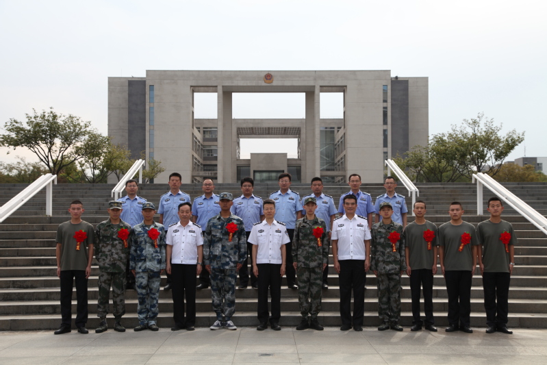 校领导与9名新兵同志一一握手后,在图书馆前合影留念。