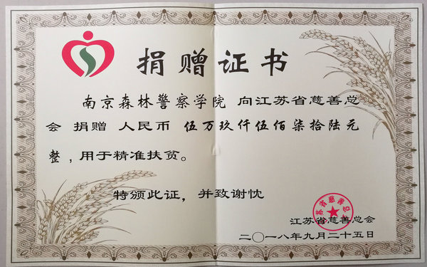 日前,江苏省慈善总会向我校颁发捐赠证书,对我校师生善举表示感谢。