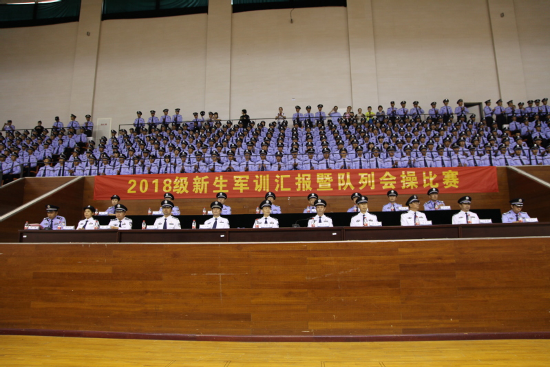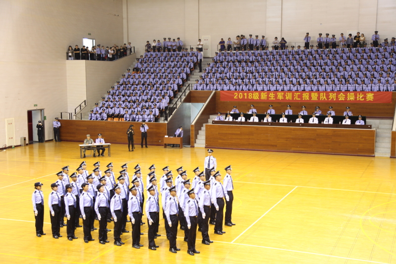 10月4日,在2018级新生军训的最后一天,我校在警体馆举办队列会操。当天下午,校党委书记王邱文,校长张高文,副校长吉小林出席活动。各学院负责人,学生工作处负责人及相关人员,各学院党总支副书记、大队长与1455名新生参加活动。部分新生家长到场观看比赛。东部战区陆兵某部的官兵同志受邀担任此次比赛的裁判。