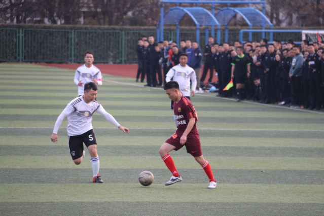 上半场伊始,两支战队的球员都展现出超强的传控能力和配合度。双方紧盯对手,攻防相继替换,丝毫不敢懈怠。治安二大队在队长7号球员的带领下,发起了猛烈进攻。最终,上半场以1:0结束,治安二大队领先。