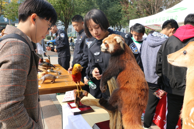 活动中,我校同学介绍了梅花鹿、豹猫、小熊猫、穿山甲、鸳鸯、红隼、眼镜蛇等动物标本的形态特征和保护等级,着重讲解了非法猎捕、杀害珍贵、濒危野生动物与非法收购、运输、出售珍贵、濒危野生动物、珍贵、濒危野生动物制品等行为的犯罪构成和量刑标准,丰富了大家对珍贵动物的认识,了解了保护珍贵、濒危野生动物的相关法律规定。