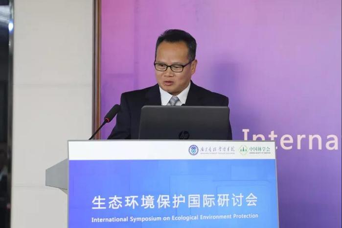 在致辞中,王邱文书记代表学校对与会领导和专家表示欢迎和感谢,并介绍了学校的办学情况。他指出,作为国家林业和草原局直属唯一一所普通高等院校,我校始终坚持“立足林业、面向公安、服务社会”的办学定位,以建设“在国内外具有影响力、特色鲜明的高水平警察院校”为目标,充分发挥自身优势,在人才培养、科学研究、社会服务、文化传承与创新、国际合作等方面取得了长足的发展。他表示,通过深入的学术研讨、思想碰撞、广聚共识、共谋良策,一定能更好地推进生态环境保护工作。