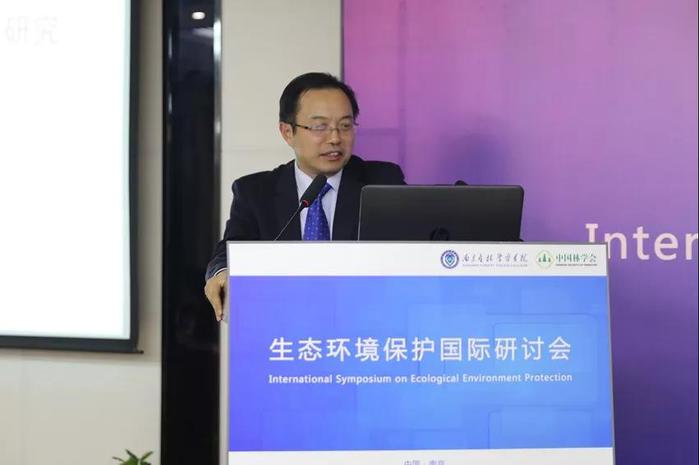 党委副书记、副校长林平主持下午的主题报告会。国家林业和草原局湿地管理司副司长鲍达明,武汉大学教授、博士生导师杜群,南京林业大学教授、博士生导师温作民、张红霄,河海大学教授晋海分别就湿地保护的体制机制改革、中国国家公园建设中的法律问题、监管体制改革、践行“两山”理念产权制度创新与保护以及生态环境损害赔偿责任归责原则等方面内容做了相关报告。