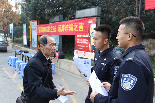 为了提高社区群众防范诈骗的能力,增强我校志愿者服务社会的能力。11月25日,我校橄榄绿青年志愿者服务队赴亚东社区开展了防诈骗宣传活动。