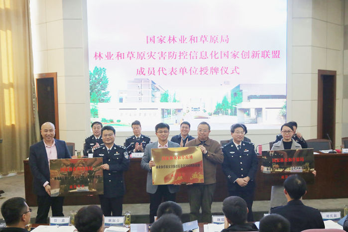 郝育军司长、丁立新巡视员、王新凯副巡视员、王邱文书记和张高文校长共同为林业和草原灾害防控信息化国家创新联盟和野生动物物证技术国家林业和草原局重点实验室两个省部级平台揭牌。钟伟宏副局长、李洪武处长和林平副书记、副校长为南京恩博科技有限公司、深圳市科卫泰实业发展有限公司以及江苏鑫软图无线技术股份有限公司等三家林业和草原灾害防控信息化国家创新联盟成员代表单位授牌。大会还举行了优秀科技者、优秀青年科技工作者、大学生科技创新先进个人颁奖仪式。