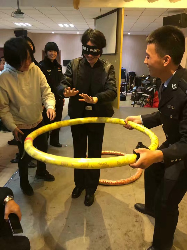 活动通过四个各有特色的小游戏带给同学们不同的感官障碍体验,旨在提高同学们对感官障碍人群的关心。“穿衣服”,蒙上眼罩并计时穿上一整套雨衣的时间,它考验的是同学们的手脚协调能力,这是残疾人生活中很重要的一部分。“障碍穿越”,蒙上眼罩,由工作人员随机变换障碍区的位置并计算到达安全区的用时,这个项目需要参与者克服对黑暗的恐惧,体验视障人士的日常生活。“你画我猜”,体验残疾人生活中的交流与表达。“触觉体验”,模仿盲人朋友日常生活中最简单的行为——感知事物。参与者蒙上眼罩,触摸并给出篮中的糖果数量。游戏中,我校同学们用手语协助几位来访的聋生完成了每一个项目,现场安静的氛围让活动充满了温情。