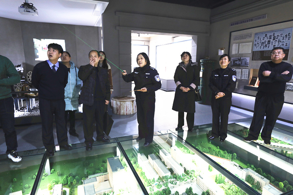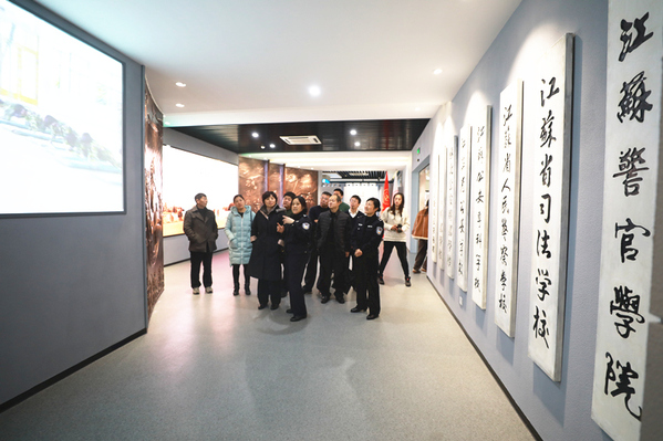 在江苏警官学院,博物馆馆长李雪冰及校史馆老师宁君丽详细介绍了江苏警官学院校史馆的设计理念、建设思路、布局和特色等情况,着重介绍了校史馆最新翻新设计的展出理念与功能重点等。李馆长表示,警察院校校史馆建设要突出警察特色,挖掘校史中的闪光点,发挥忠诚教育、学风教育、文化育人的复合作用。