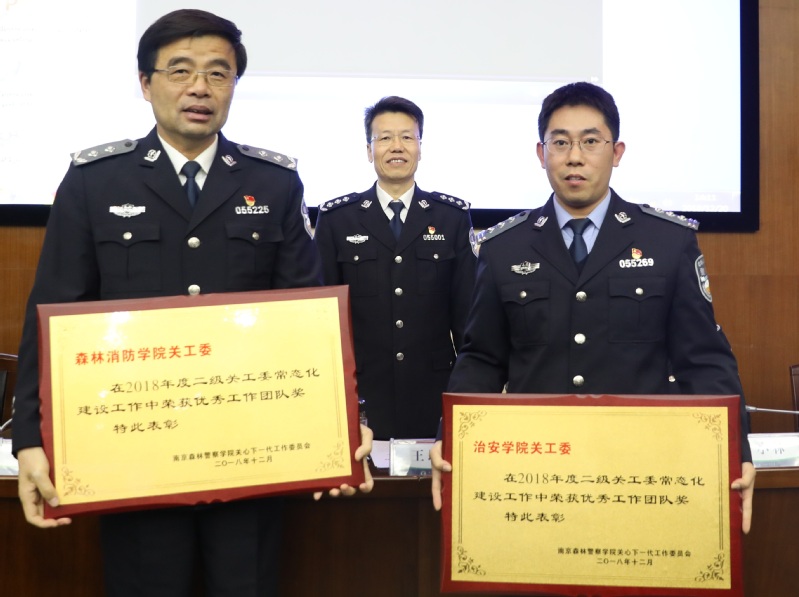 会上,吉小林副校长宣读了《关于公布2018年度二级关工委工作常态化建设合格单位名单的通知》,耿淑芬副校长宣读了《关于授予治安学院、森林消防学院为2018年度关工委优秀工作团队的决定》和《关于表彰2018年度关工委工作先进个人的决定》。我校二级关工委常态化建设经过大家的共同努力,7个学院关工委均通过申报、查验、整改等考核程序,被认定为合格单位;有12名同志被评为本年度关工委先进个人。